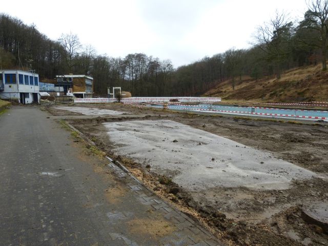 Nach der Schließung des Freibades zum Ende der Saison 2023 wurden die Vorbereitungen zum Umbau durchgeführt, welche die Stadt Remscheid mit eigenem Personal leisten konnte.