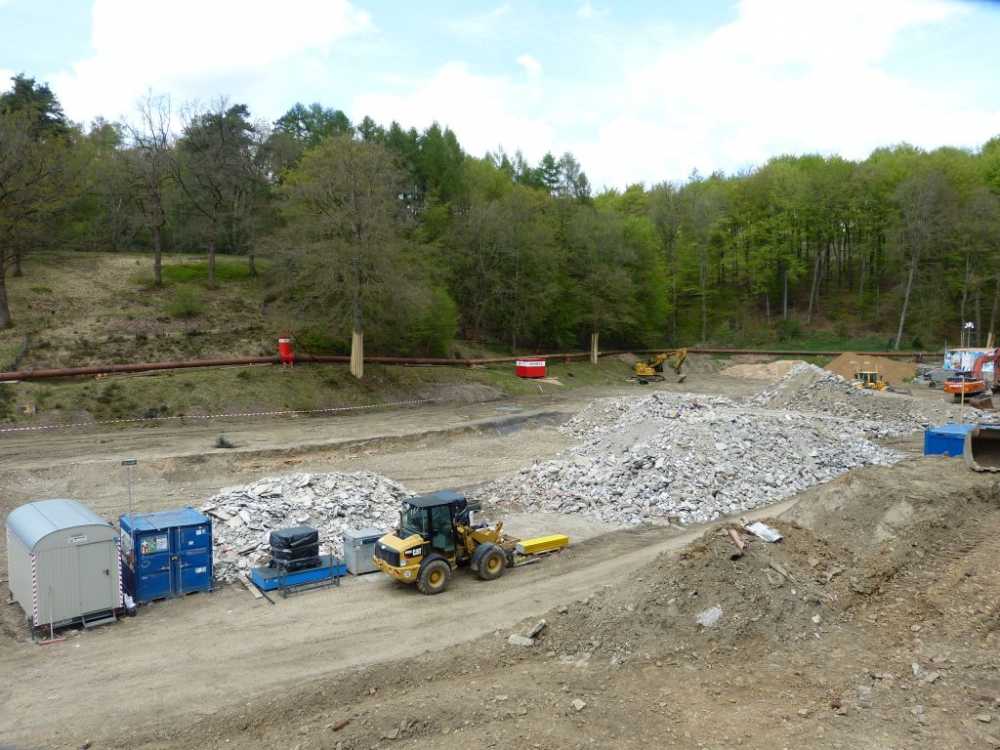 Am auffälligsten war sicherlich die Tatsache, dass ein großer Bagger begonnen hatte, das alte Eingangsgebäude abzureißen. Nach knapp zwei Tagen fehlte bereits ein Viertel, trotz des aufwendigen Sortierens der einzelnen Materialien.